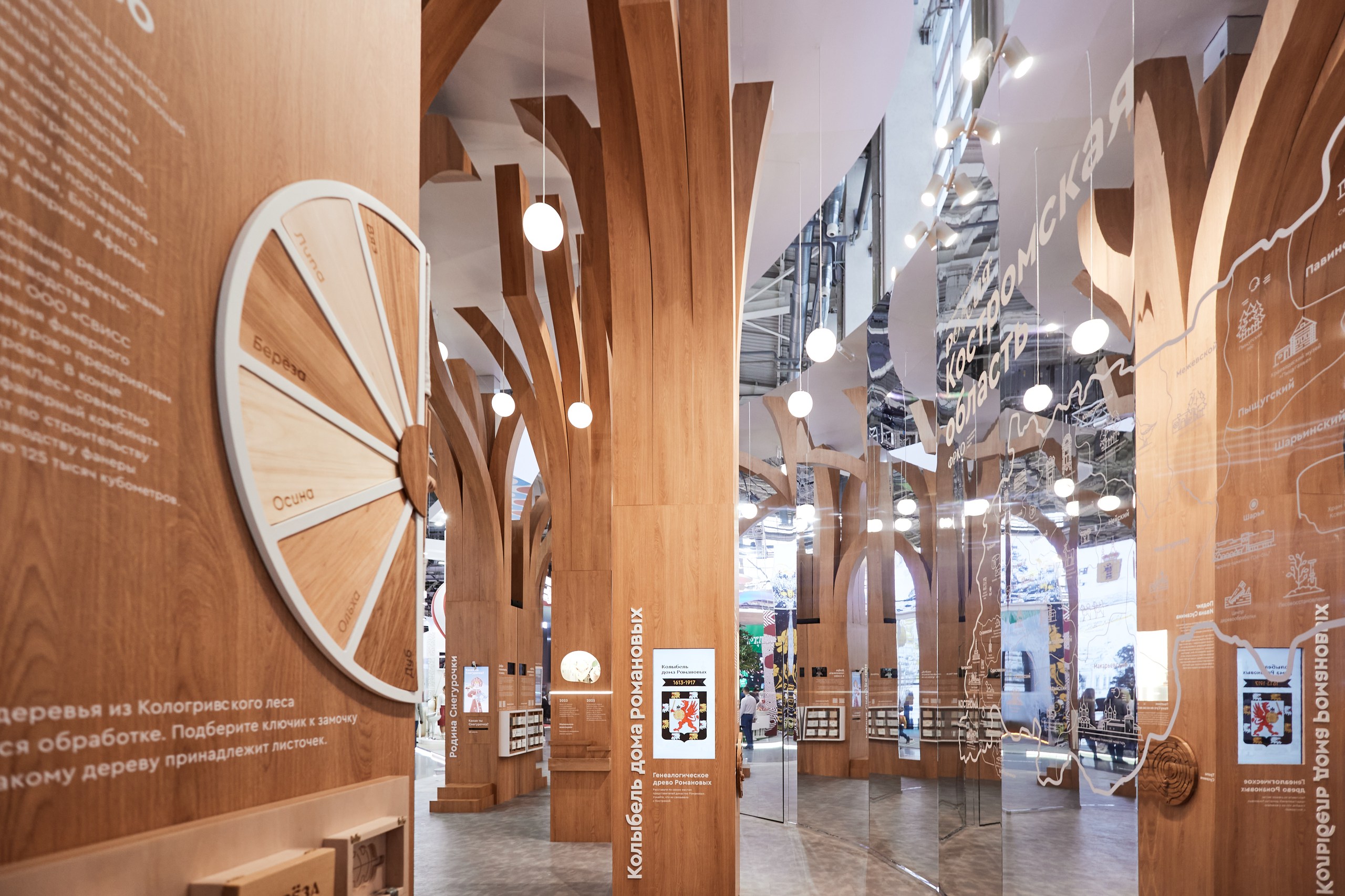 На выставке регионов форума «Россия» Костромская область представила стенд «Лес костромских историй», разработанный агентством «Лира» по заказу некоммерческой организации «Фонд развития Костромской области». Агентство с нуля продумало концепцию стенда, дизайн, контентную часть и интерактивные зоны.